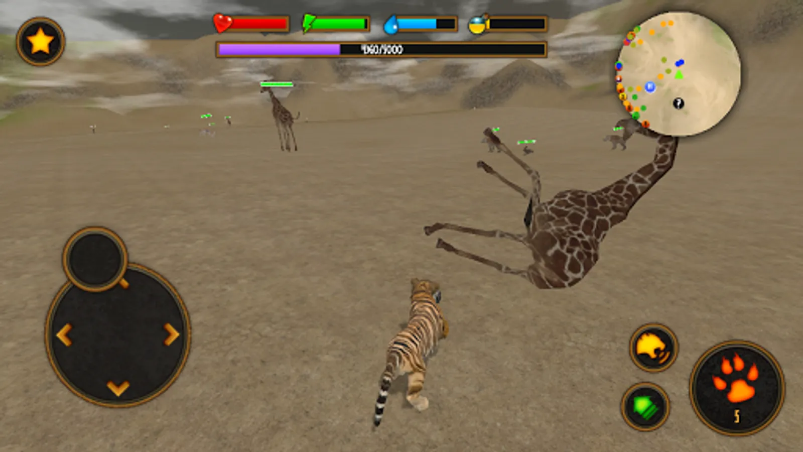 You must help this huge cat navigate the wild safari landscape as he explores crocodile infested rivers, fights against cheetahs, hyenas, Elephants, Lions, Leopards, snakes and other dangerous animals. This high action animal simulator will keep you on the edge of your seat. However, this is not an ordinary animal simulator . . .
