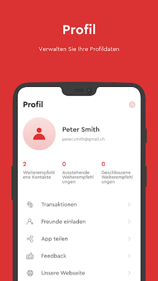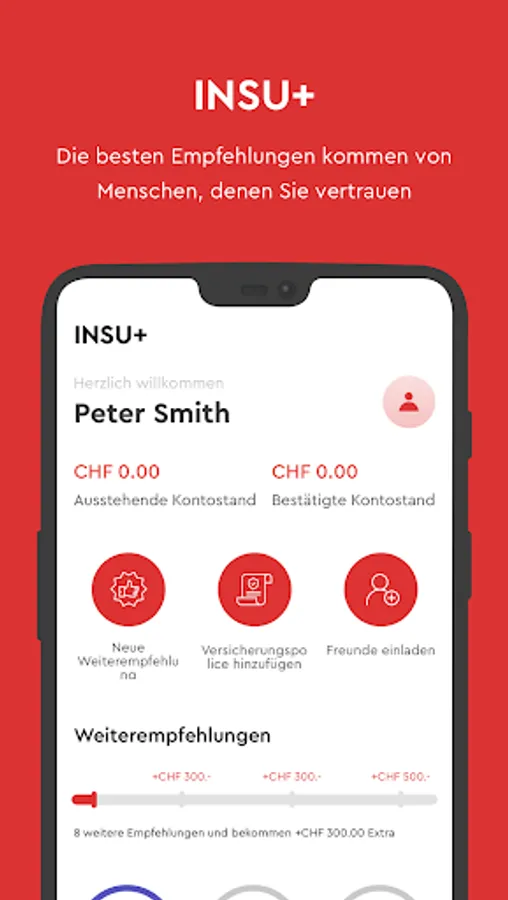 Receive money for each referral, up to 100 Chf.- per deal, plus bonus sistem!