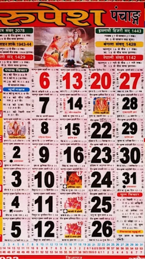 Hindi Calendar app containing backgrounds of in Thakur Prasad Calendar 2023 2022 full hd resolution.