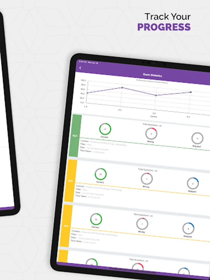 - Track and monitor your progress with detailed statistics. You can review taken tests anytime.