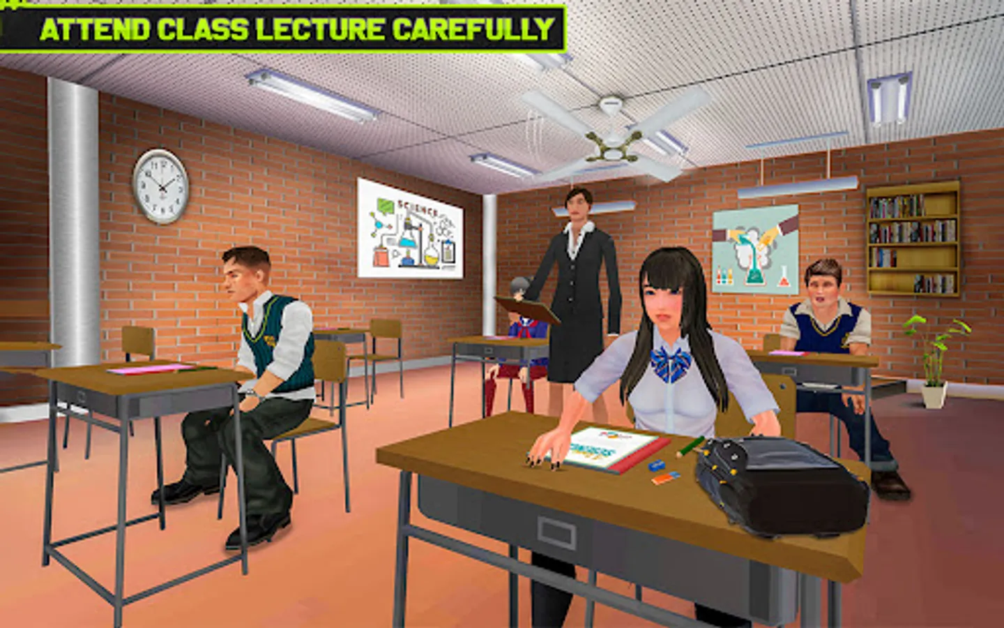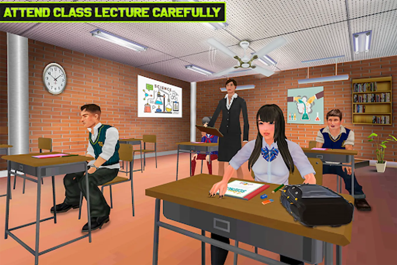 Enjoy the most incredible virtual school simulation with thrilling missions to play with. Your school campus is huge, and have many classrooms, auditorium, cafeteria, gym, corridor, etc. Meet with friends, go to the classroom and attend the lecture carefully. Selfie Time! Take a selfie with your group friends and save them in your school dairy. Avoid fighting students and enjoy your time with your friends in high school life simulation.