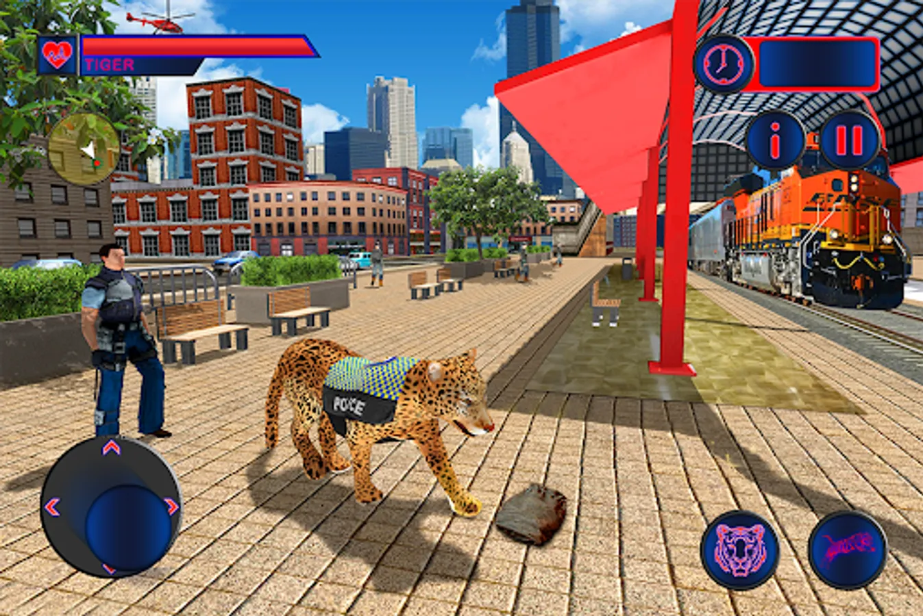 Cop tiger duty! Chase & defeat criminals at the railway station, subway & patrol around the grand city.