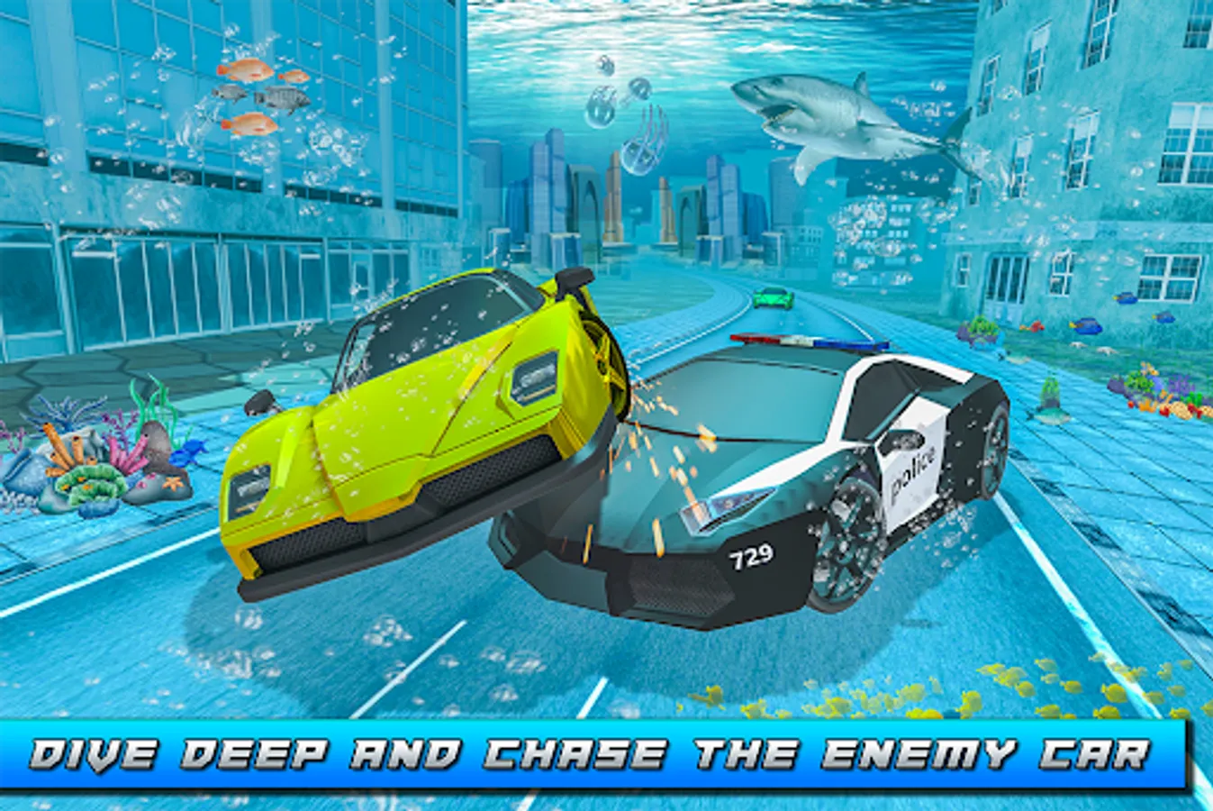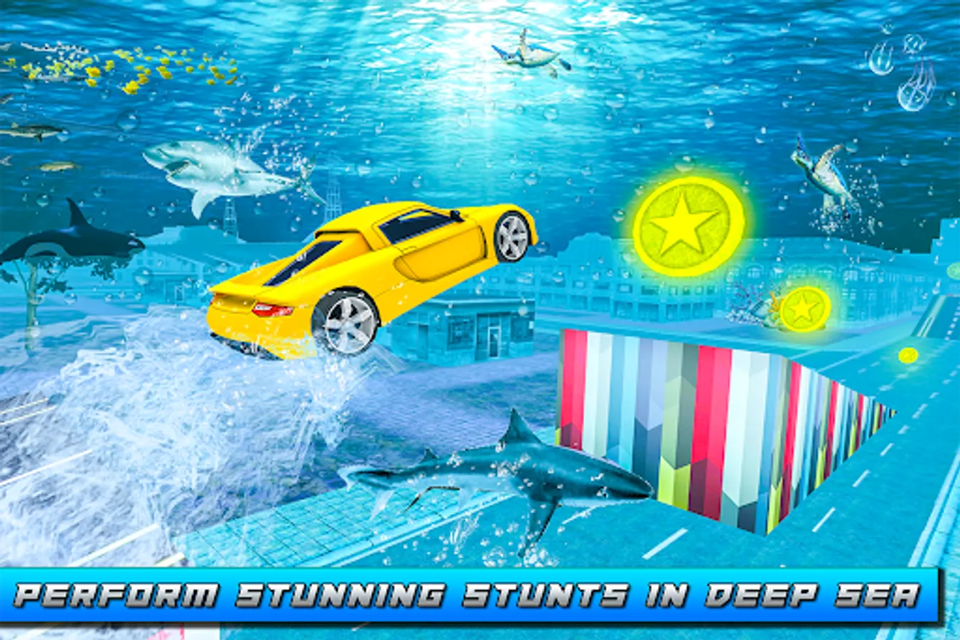 Travel the underwater games world with the help of your flying car driving skills and perform amazing stunts in this car racing mania deep water adventure game. Enjoy impossible stunts ramp in the underwater city and collect coins to get increase your experience techniques in this floating underwater car ultimate thrill. Free roaming in the underwater grand city and chase the criminals with the help of your sports car 2019.