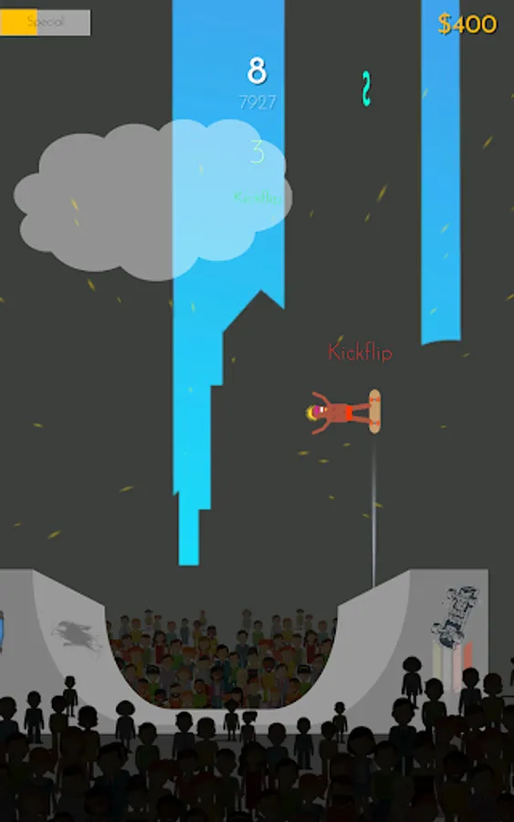 Perform tricks and land them successfully on a vertical half pipe. How high can you score?