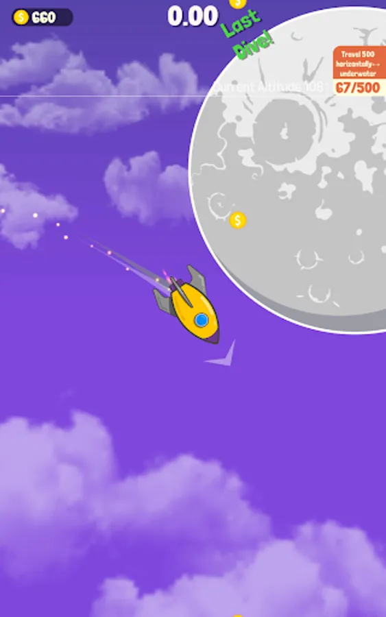 Tap to rotate your submarine to do as many flips as possible for more currency, make sure you land safely though or it’s game over.