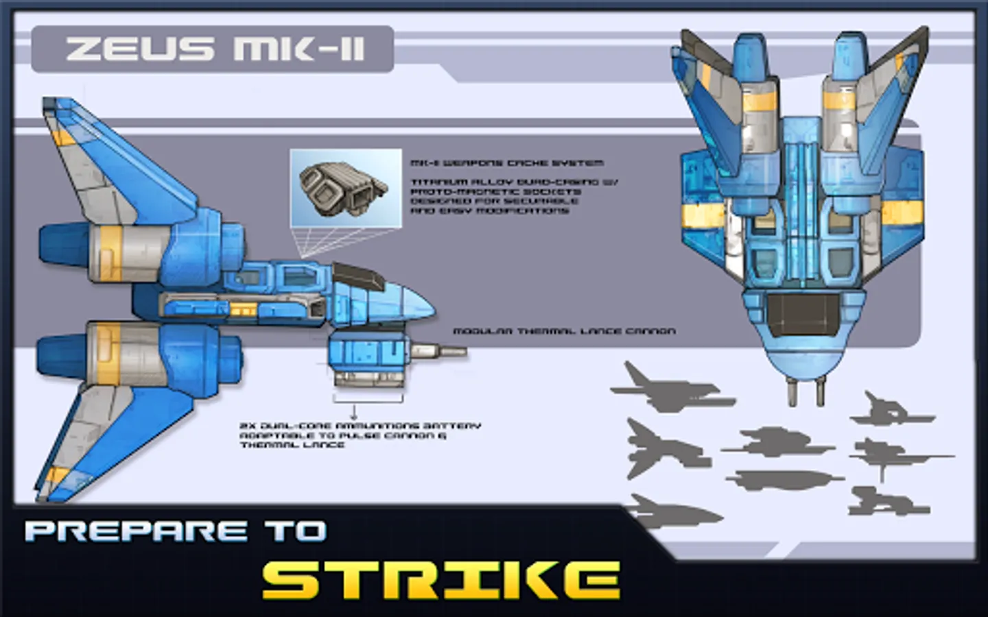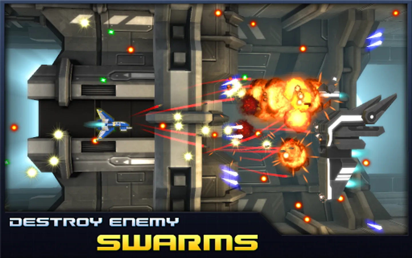 Battle through relentless waves of AI drones in a campaign that will take you through 4 unique environments. Earn credits and upgrade your ship with new weapons, equipment, and abilities.