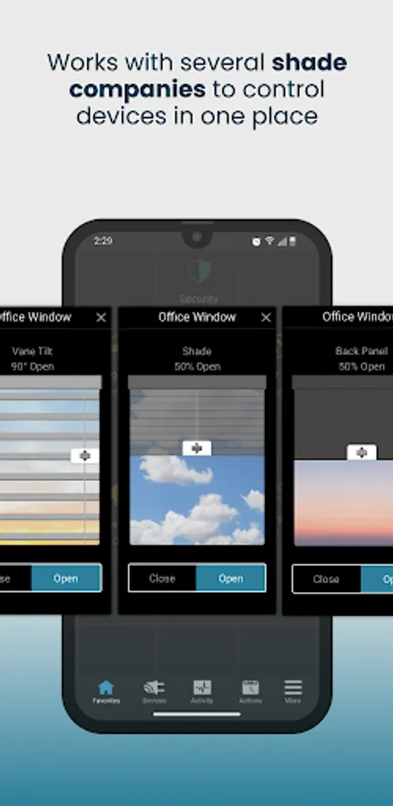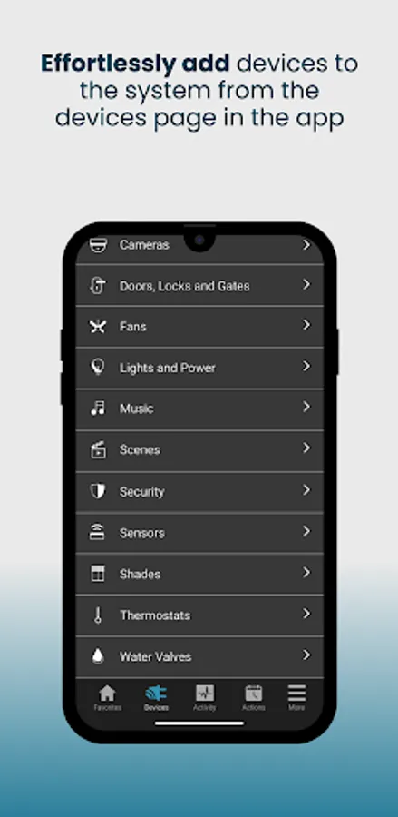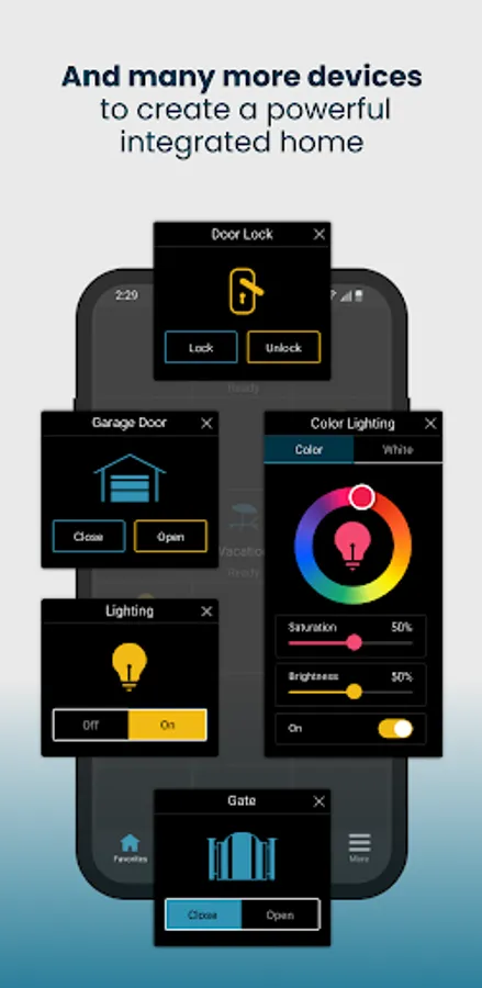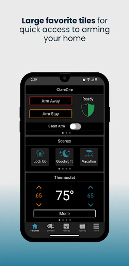 * With the Favorites screen, each user can fully customize device control tiles and specialty widgets such as security, scenes, lights, and thermostats.