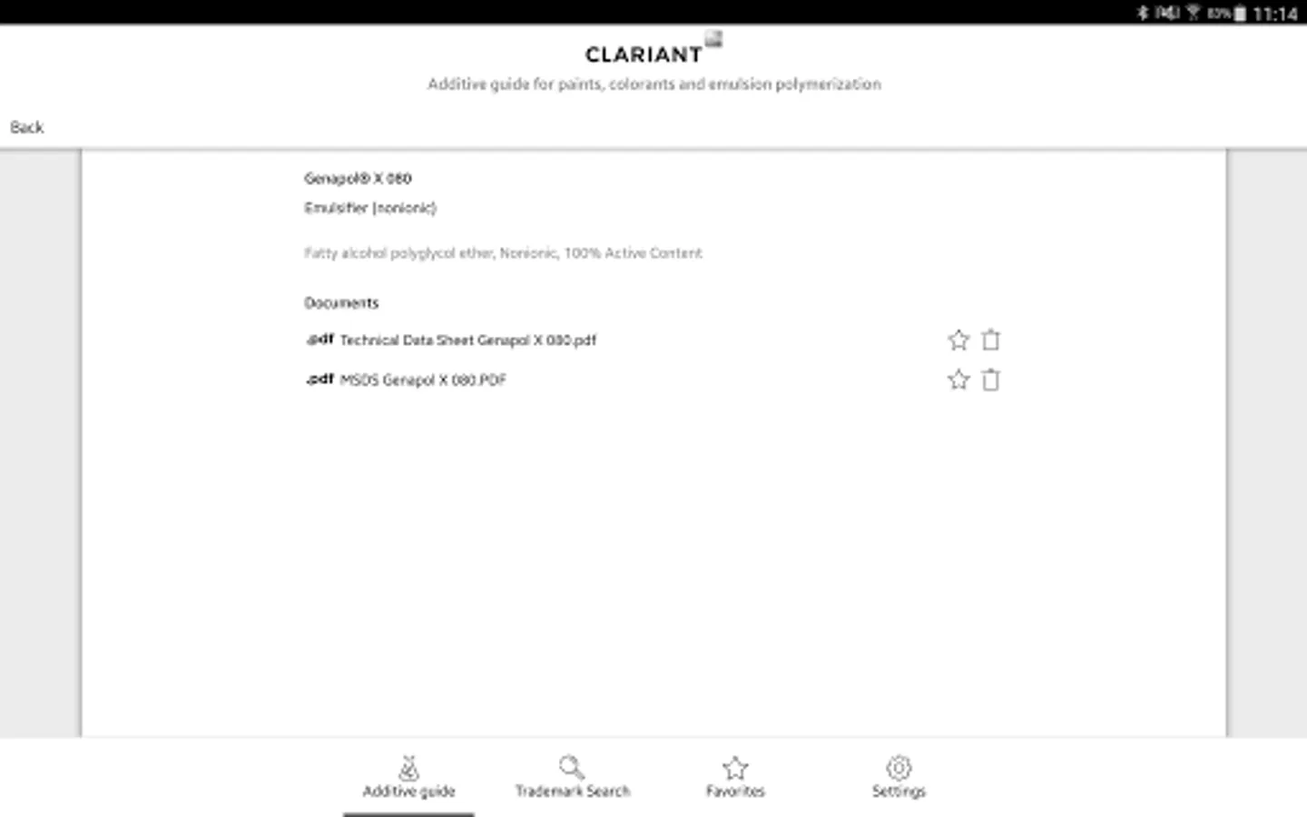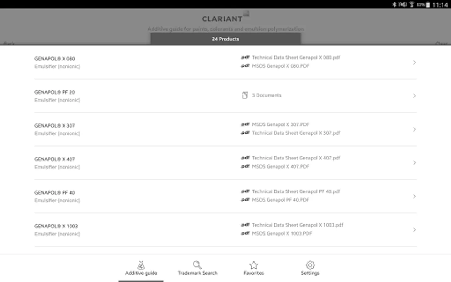 View all products in the app with a short description – MSDS and TDS files are available to view and download, too.