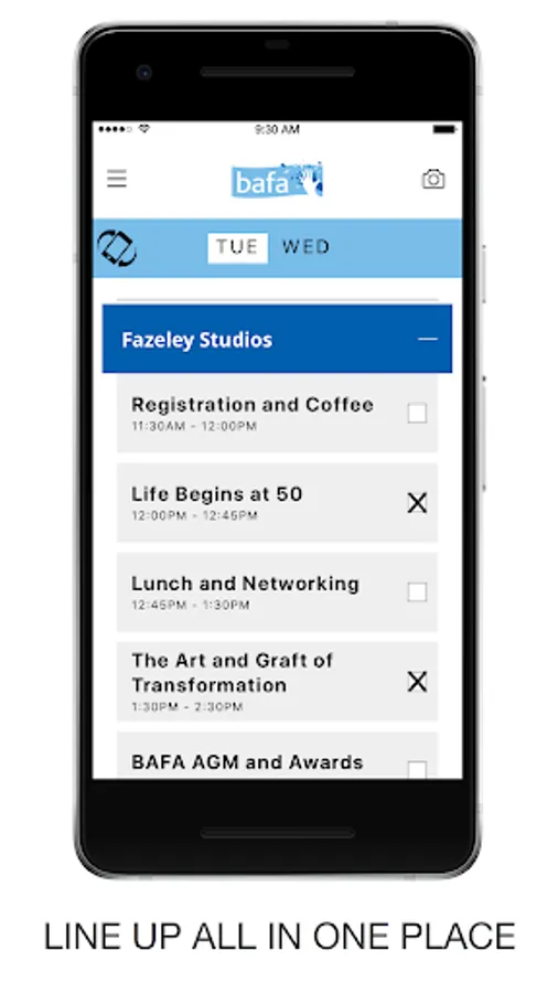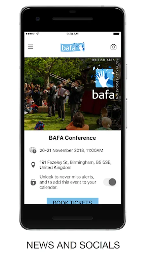 Download the free official app to stay in the loop with all BAFA Conference social media, line-up times, find your friends using the find-a-friend capability on the map screen, stay up to date with any set time changes throughout the weekend and much more.
