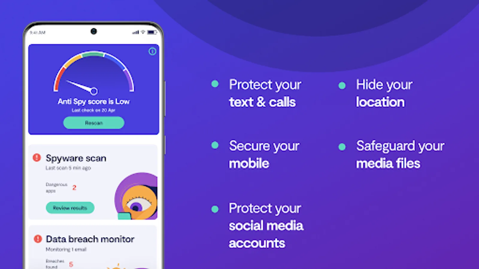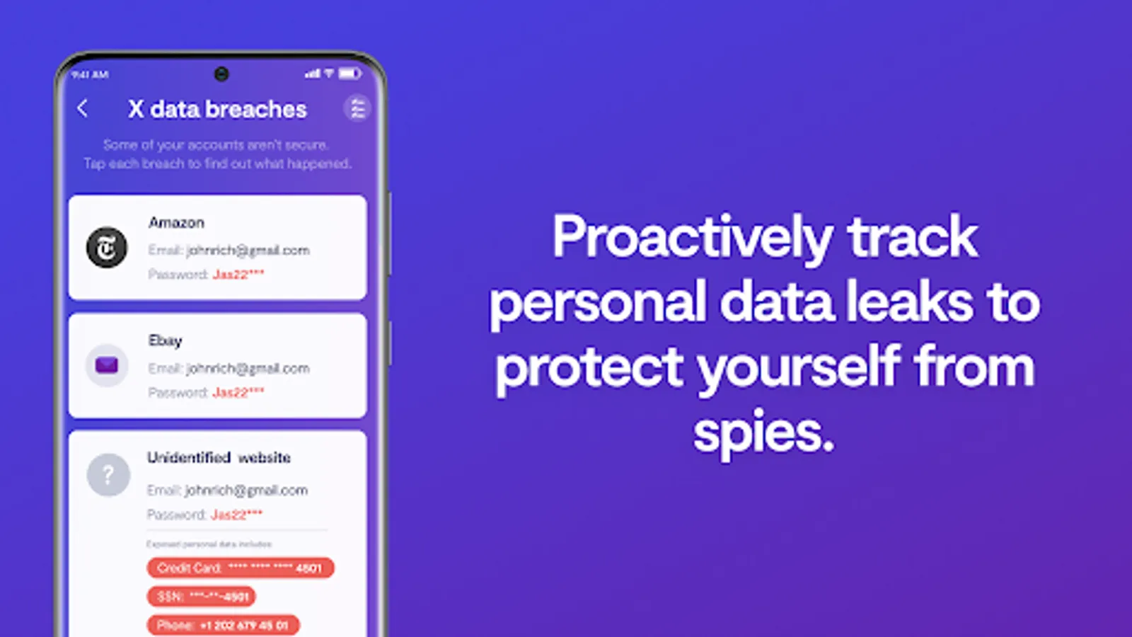 ▶ Data breach monitor: discover if any of your data is accessible to spies. Get notified if your passwords or other private info has been leaked.