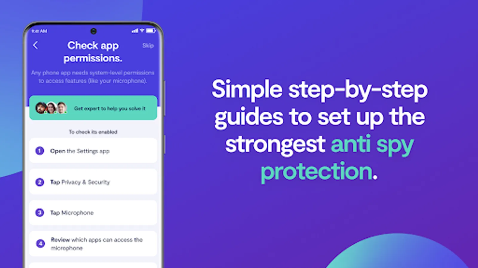 ▶ Anti-spy setup: get step-by-step checklists guiding you through basic anti-spy protection on your device to decrease the chance of threats.
