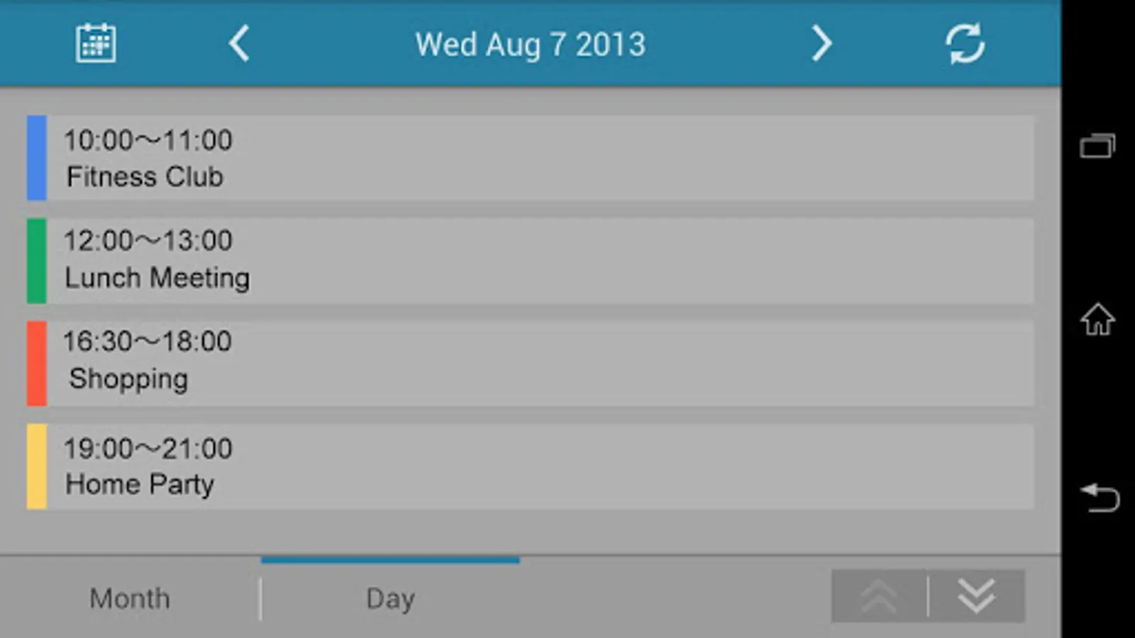 • Daily and Monthly displays supported. Touching on the Daily display shows details for scheduled events.