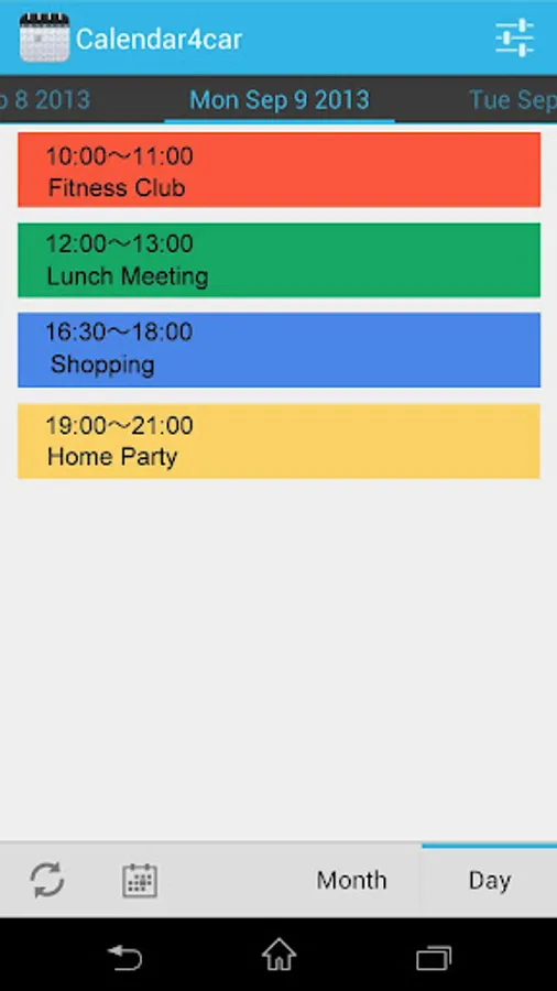 Calendar4car is an app that allows easy checking of your schedule while in your car by connecting to Clarion in-vehicle equipment.