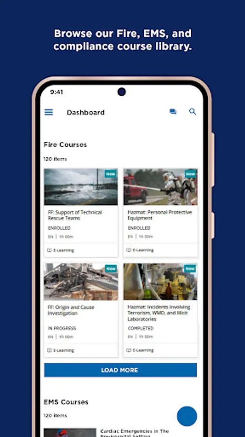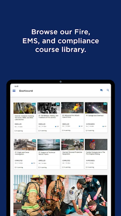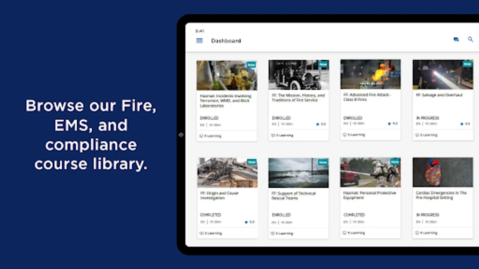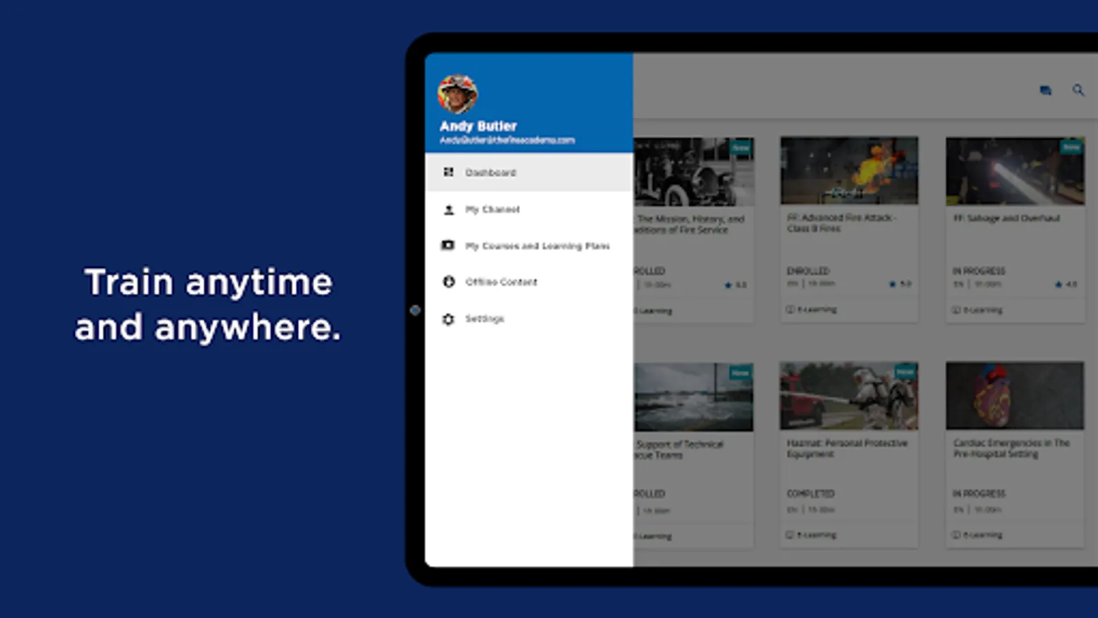 With The Fire Academy app, you can now access online fire and EMS training 24/7, wherever you’d like. Access your assigned courses and videos, learning plans, and other training materials right on your phone or tablet. Training & tracking your progress on the go has never been easier!