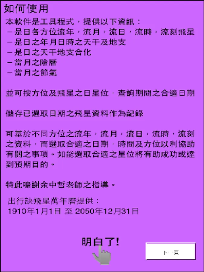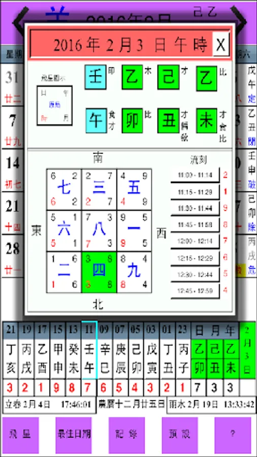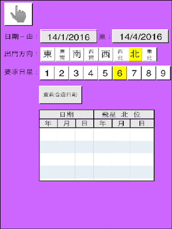 You can also query the appropriate date of the period according to the position and the star position of the flying star
