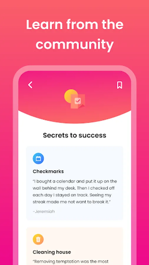 • Daily activities, including tips, lessons, check-ins, quizzes, and reflections