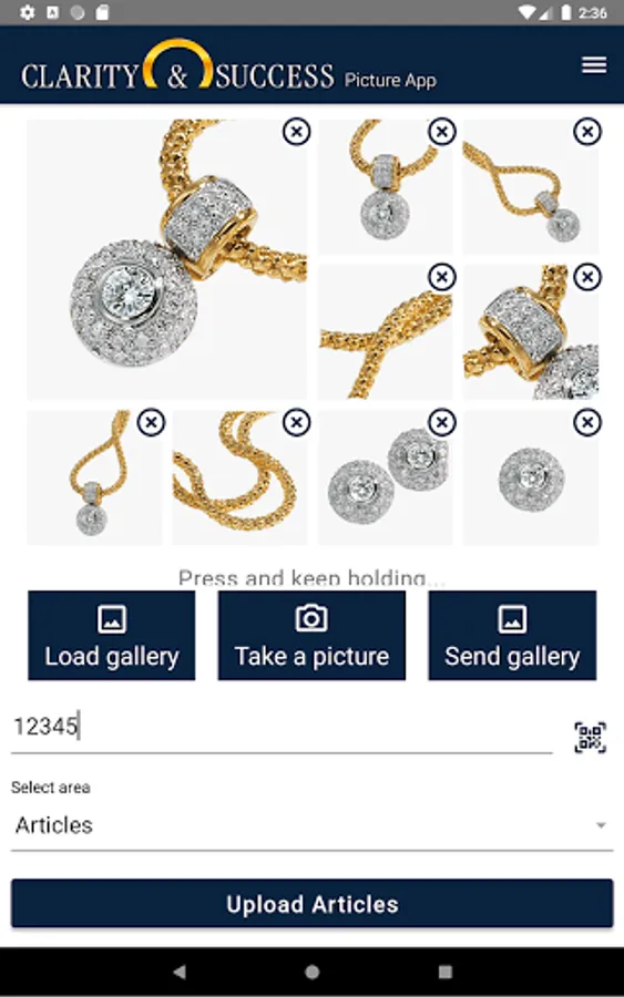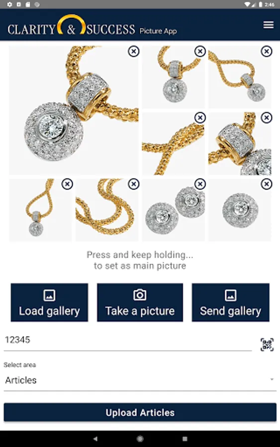 Jewelers and goldsmiths can use the app to take multiple pictures with the internal camera of the mobile device or load them from the picture gallery. If there are several images for a product, one image is always defined as the main image.