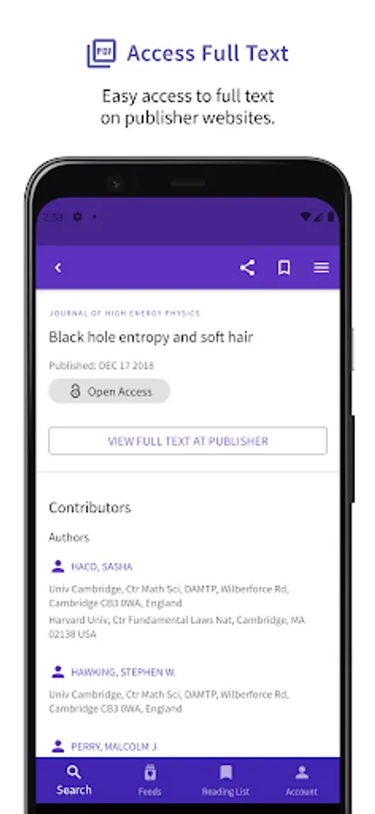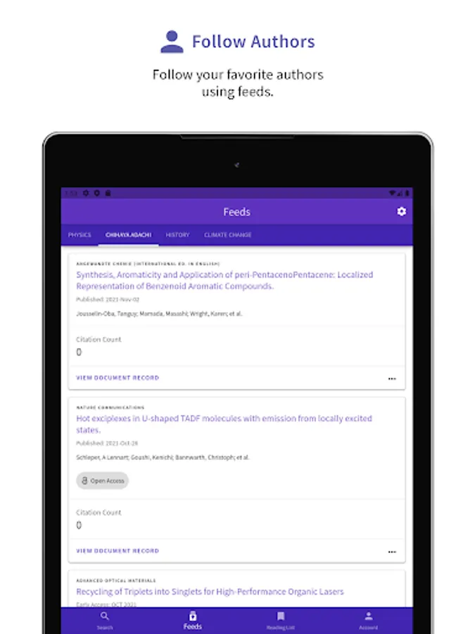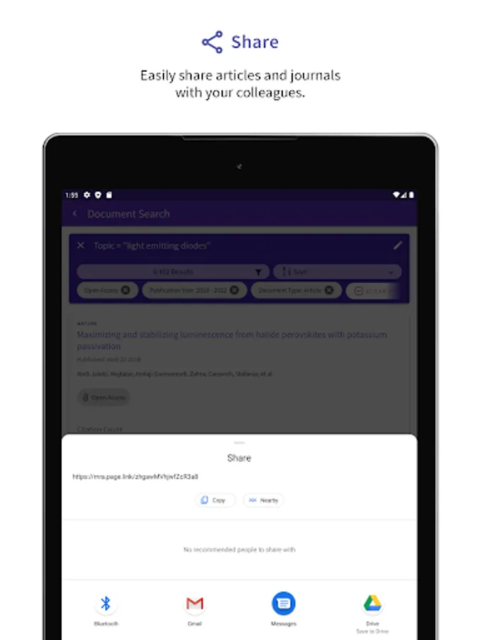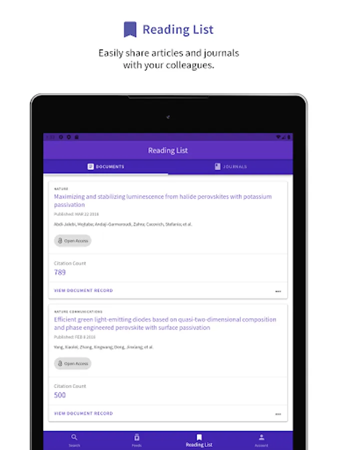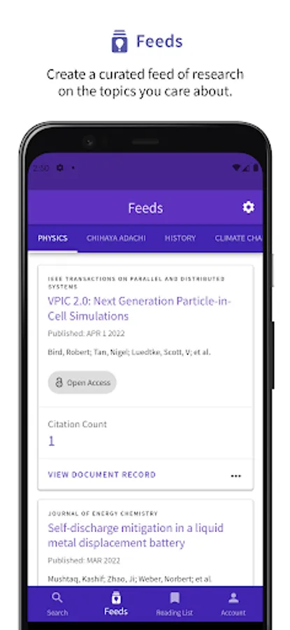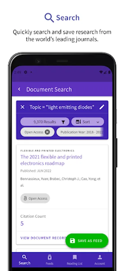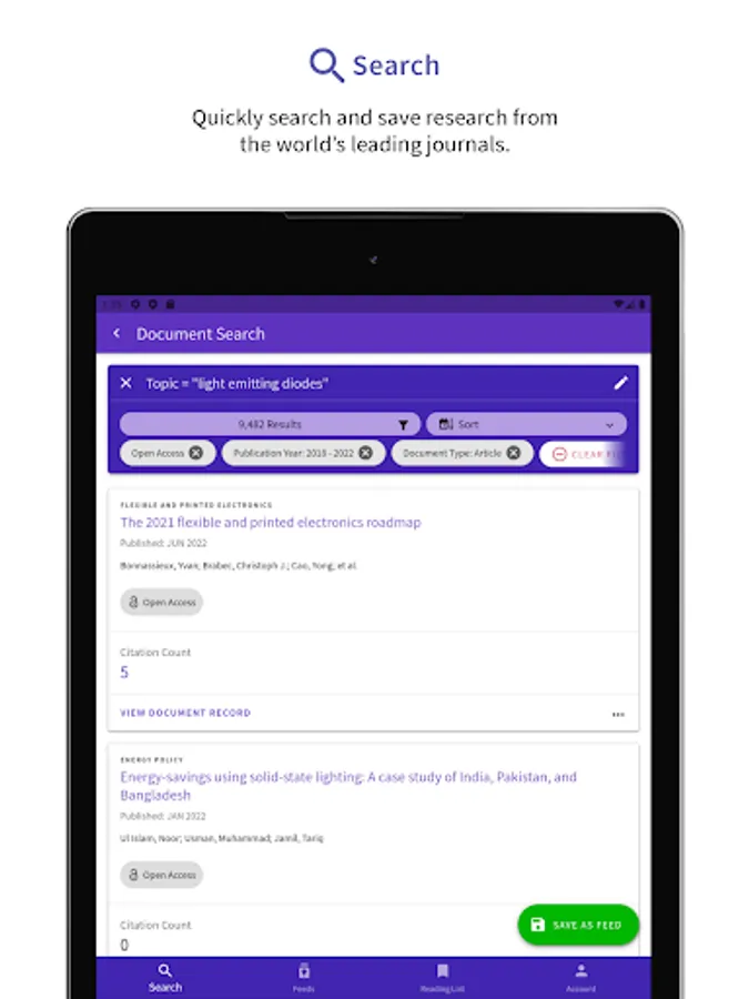 Introducing Web of Science™ My Research Assistant, a mobile app that gives you access to the Web of Science and the Master Journal List wherever you are. Quickly search and save research from the world's leading journals, create a curated feed of the research you care about most, and easily share articles with colleagues – all from your smartphone, wherever inspiration strikes.