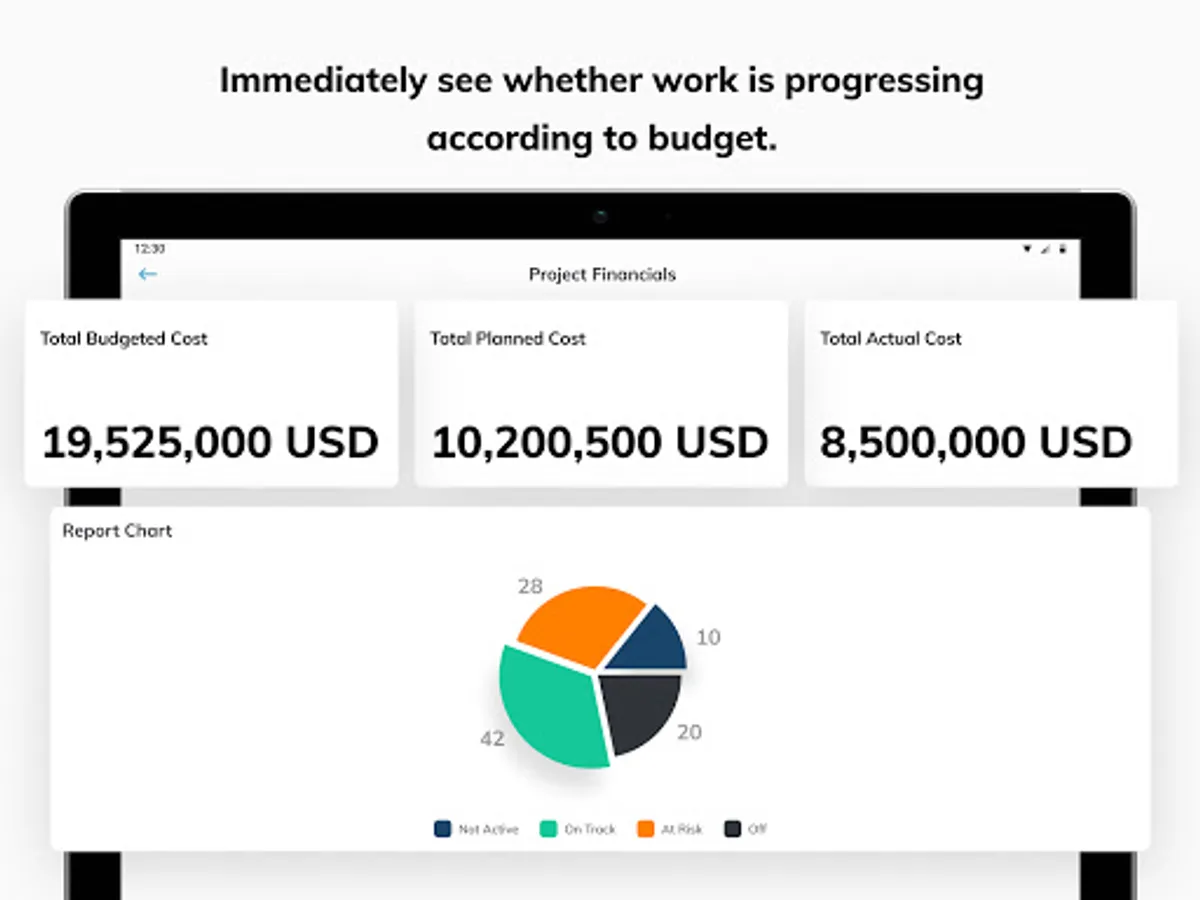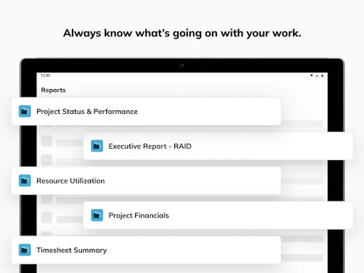 The mobile app puts viewable access to all the reports you’ve created in AdaptiveWork at your fingertips, so you can always get the latest status in real time. Away from your desk when a senior executive calls to check up on the status? No problem – you’ll have exactly what you need to answer their questions.