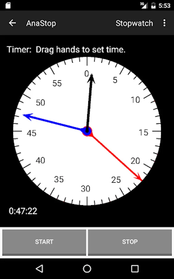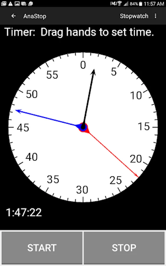 AnaStop is a simple stopwatch and countdown timer that features analog clock faces with moving hands. In particular, you set the time on the timer by simply dragging the clock hands to the desired time. If you prefer analog readouts to digital ones, this is the app for you. By the way, there is also a digital readout.