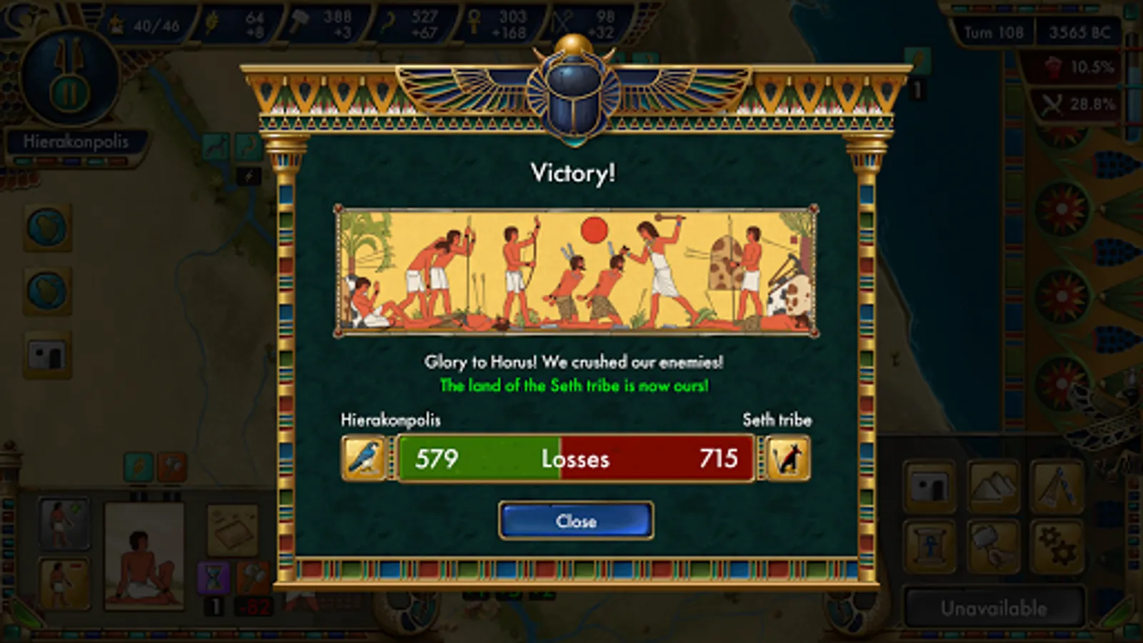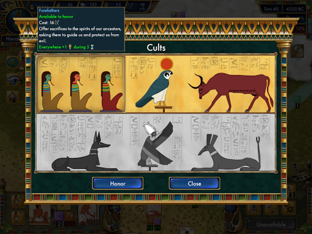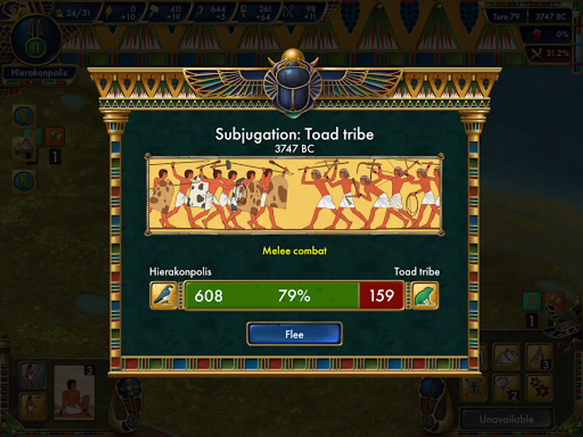 Turn-based historical simulation strategy will lead you through the history of Predynastic Egypt. Starting from 5000 B.C. you will guide the nomadic and humble Egyptian tribe through all the hardships to prosperity and power culminating in the Unification of Lower and Upper Egypt.