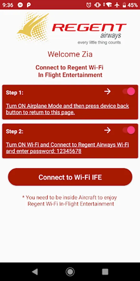 Notes: "Regent Screens" app requires you to be onboard and connected to the Regent Airways WiFi.