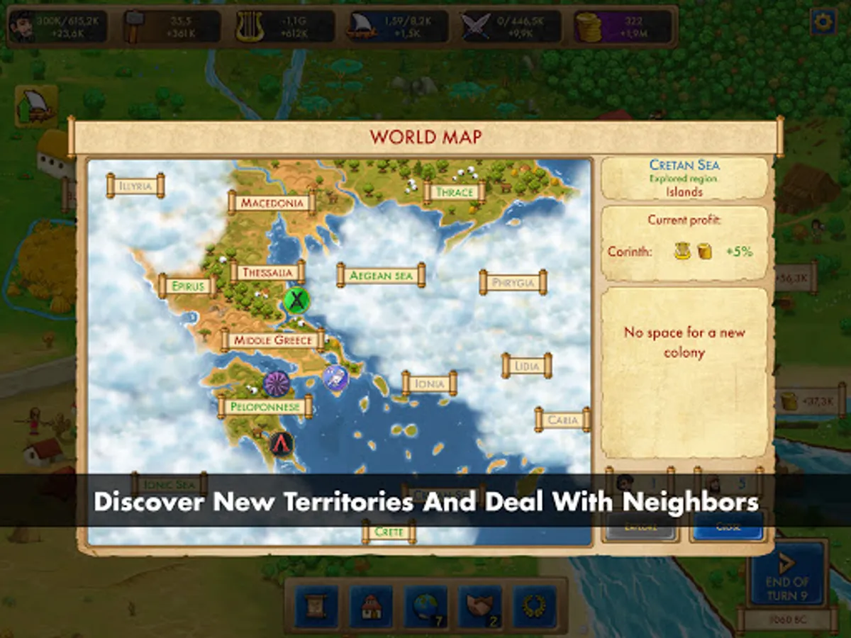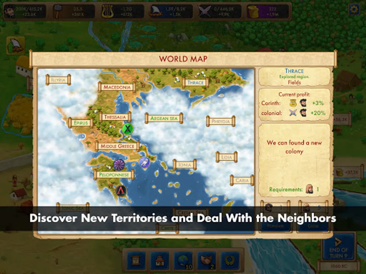 • Explore the world, establish colonies, build relationships with neighbors through the game's deep diplomacy system.