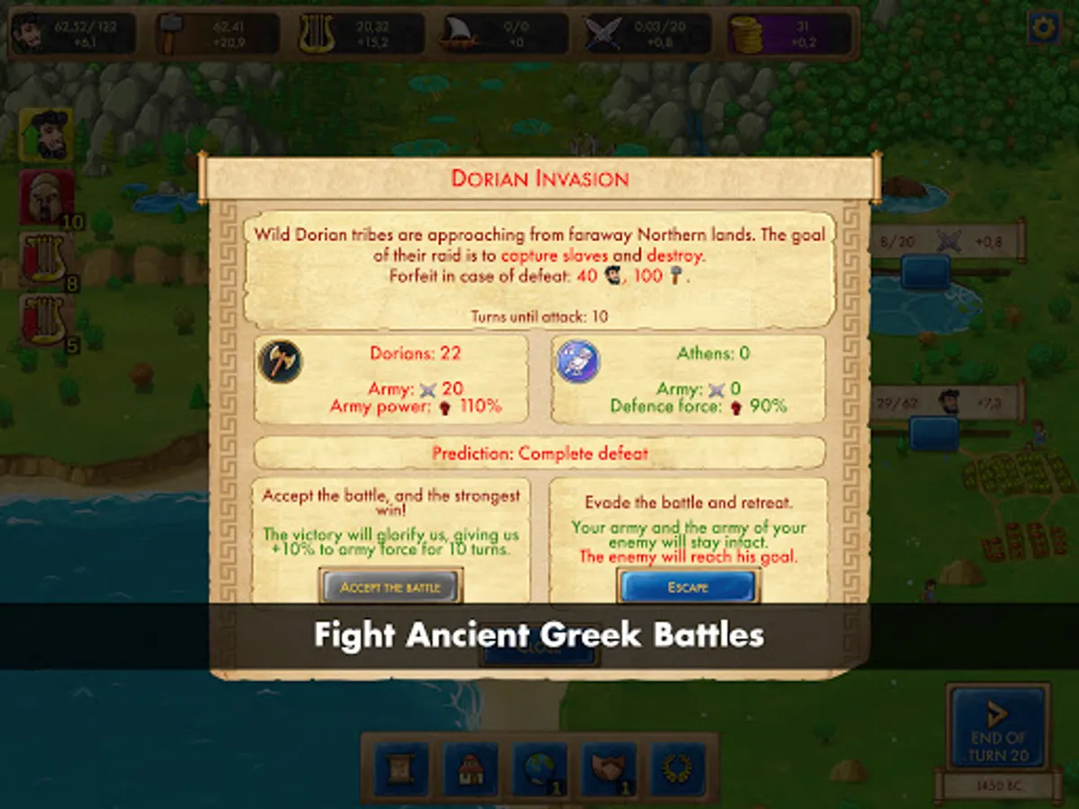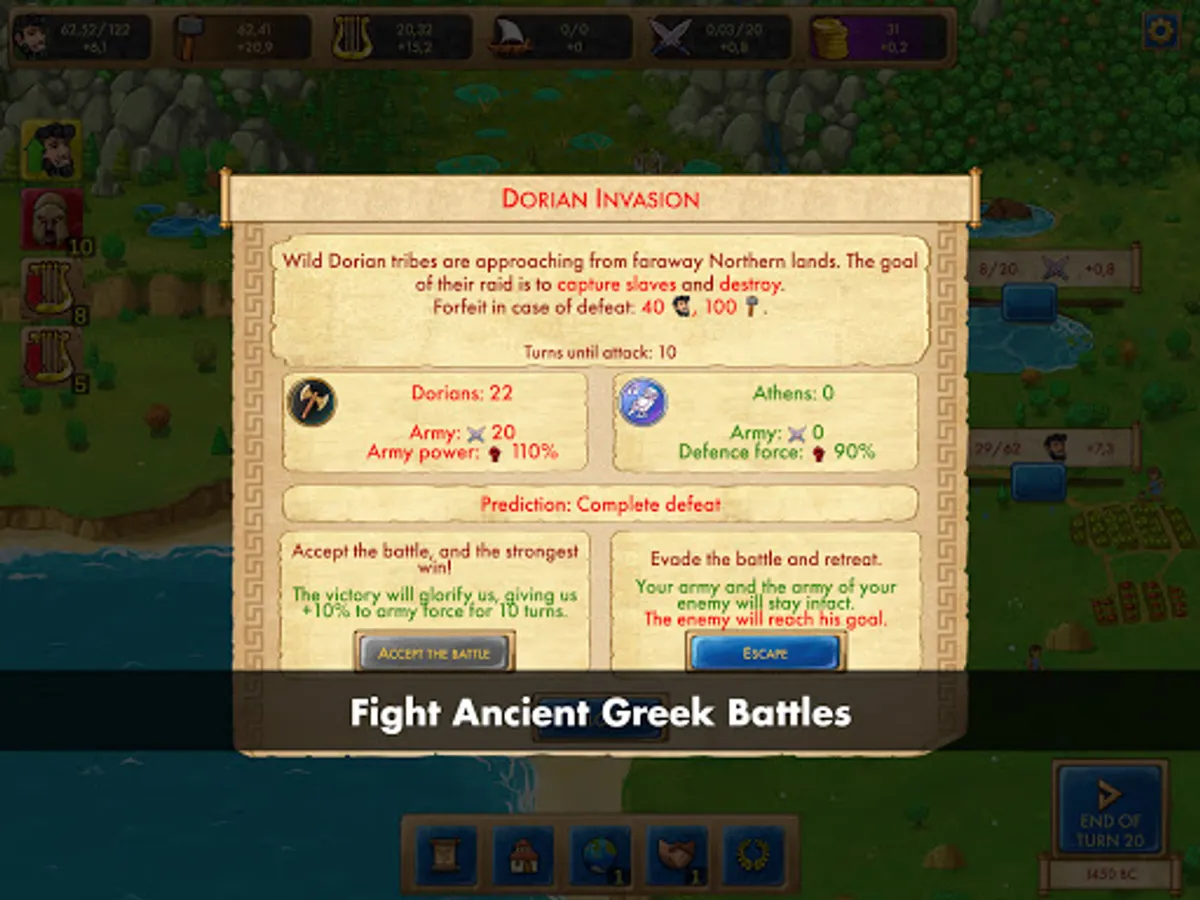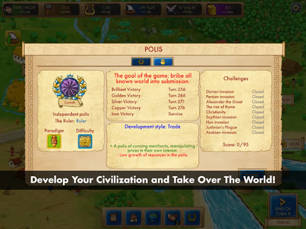 Together with the citizens, you will have to fight in ancient battles against various invaders, deal with domestic conflicts, survive natural disasters in order to unite the whole Ancient Greece under your rule, and conquer the entire known world from Northern Africa to North Europe.