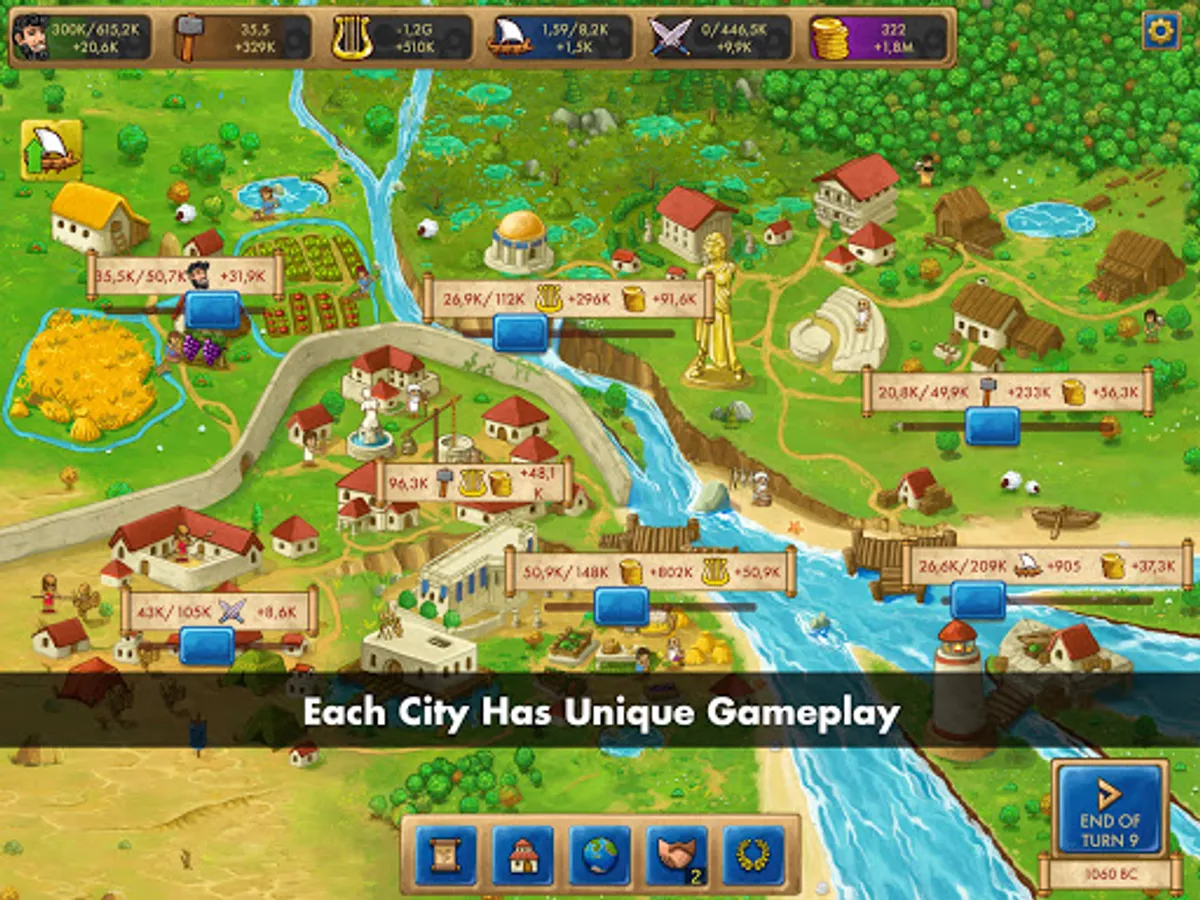 • Research ancient technologies, manage resources, build monuments to turn your settlement into a flourishing and influential Polis!