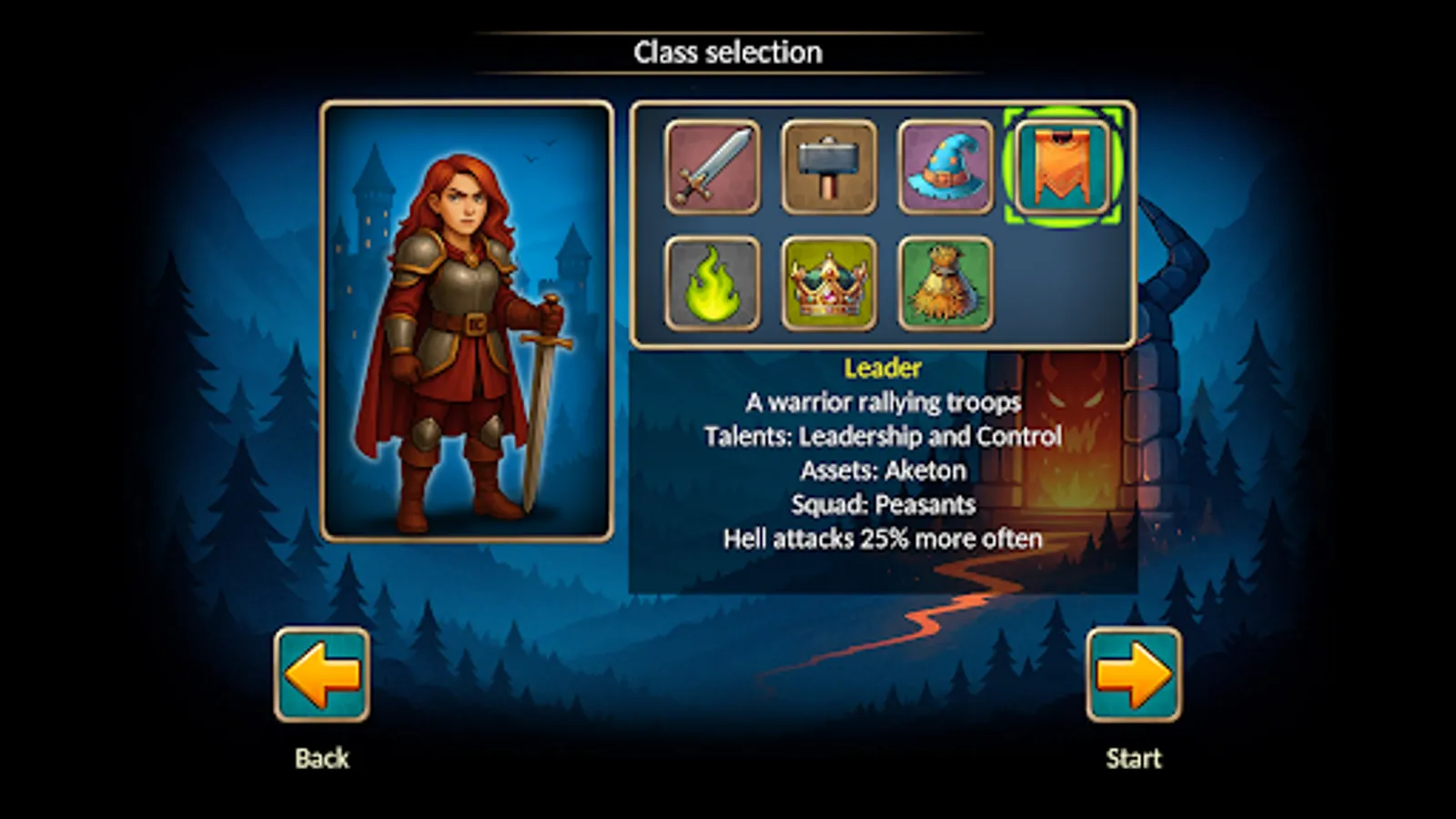 Warrior, Mage, Lord, Artisan, Leader, Necromancer, Peasant, and Druid.