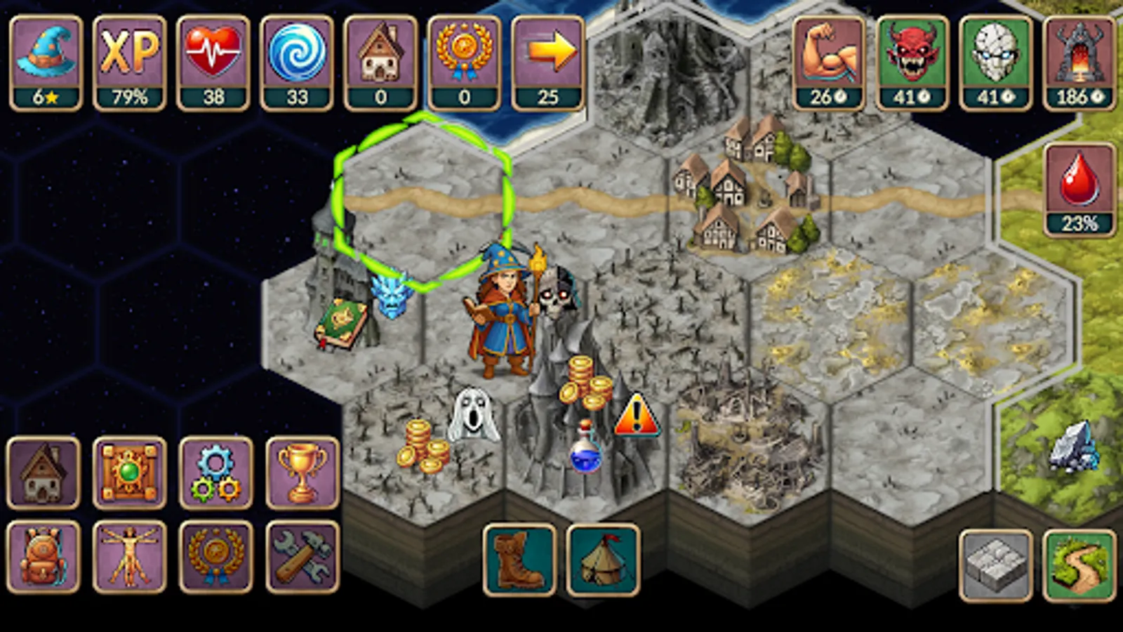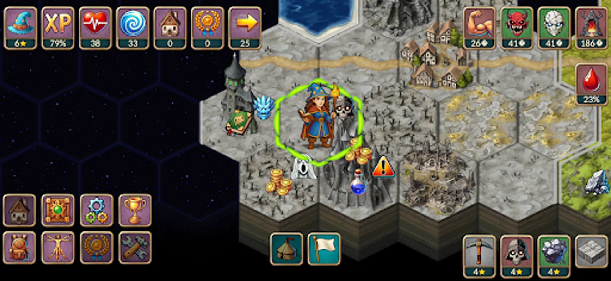 - Equipment & magic: forge legendary weapons, enhance them, and unleash devastating spells to turn the tide of battle.