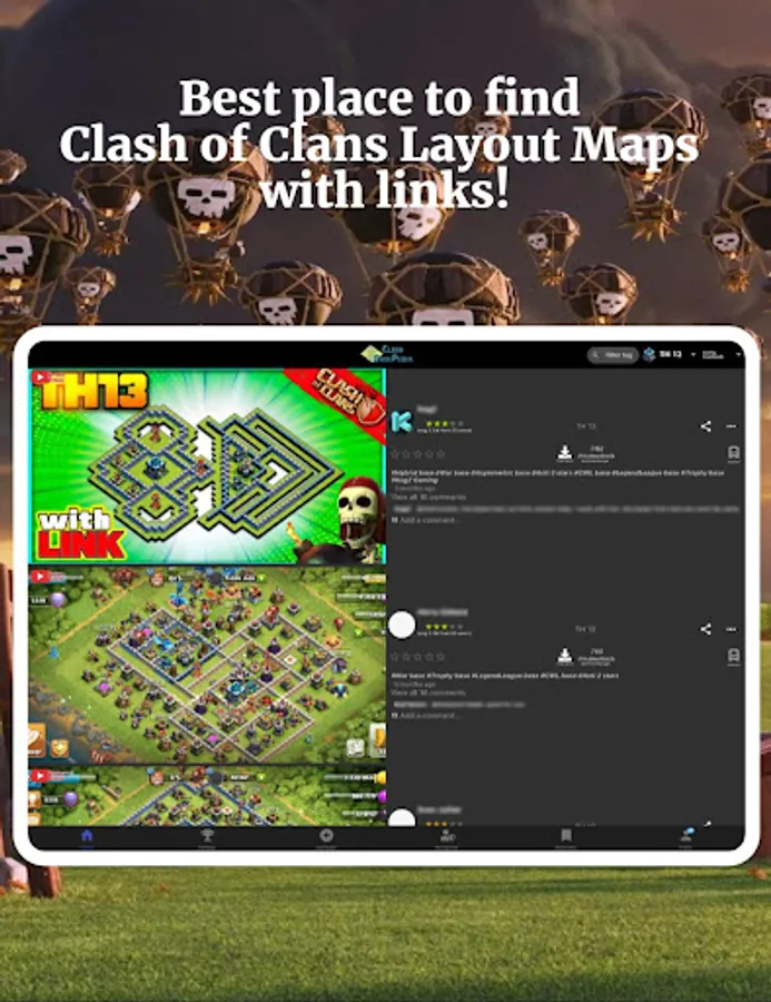 Best place to find Clash of Clans Layout Maps with links! I know that every app says it is the best but we are not lying, just install it and you will not regret it!