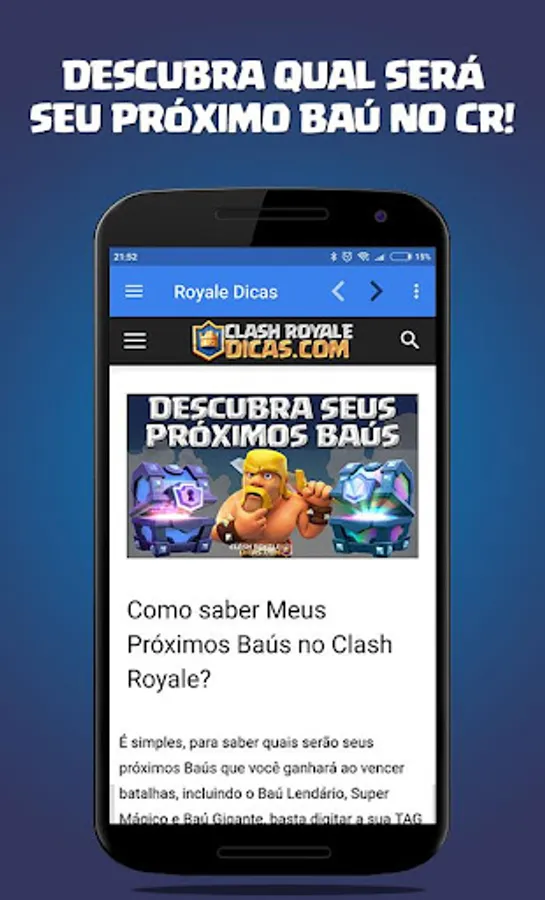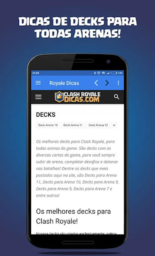 The official Clash Royale Tips app is here! Download now and stay on top of all the news from Clash Royale, from Tips, Strategy Guides, Decks, access to the best Tools and the best content about the game!
