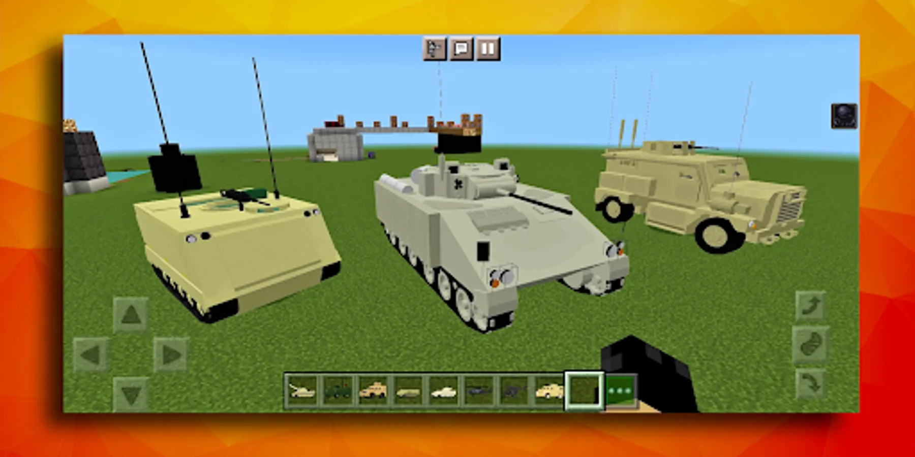 You can also build your house or bridge, fight different mobs, get resources, and just enjoy the gameplay with the world of tanks addon for wargames. You will definitely get carried away with the war game mod in MCPE and get WoT military games. But if you want to change the theme of the game, be sure to try our other apps. We are sure that you will find something else interesting for yourself, except for army games and tank wars battles. In each of our applications you will find a guide for installing the world of tanks addon, the WoT mod itself and pictures for it. You will only need to install our application in Minecraft for wargames, find the mod with war tanks inside, download it to your mobile device.