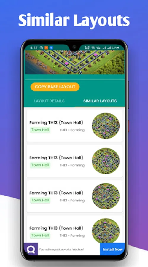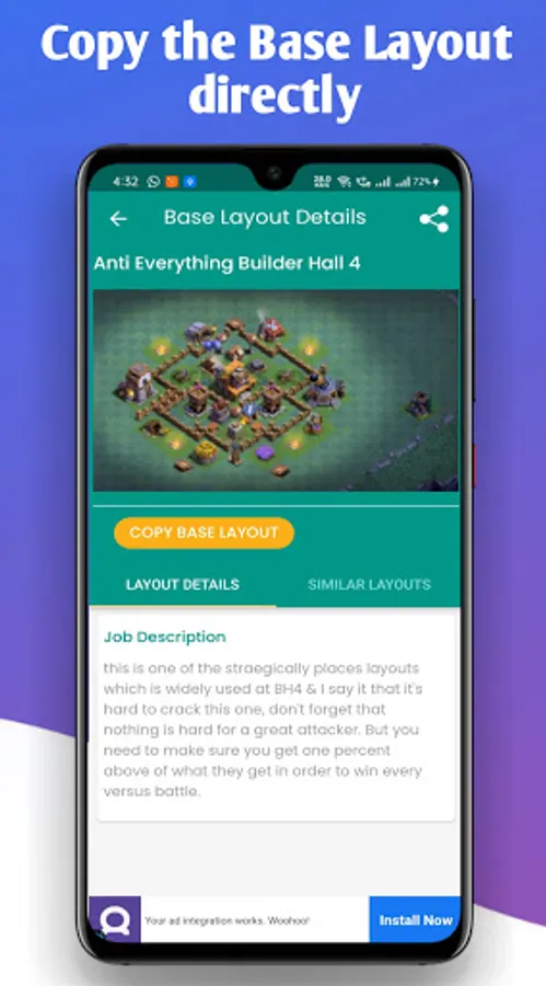 Clashtia - CoC Base Layouts Copy Directly is designed to copy Town Hall and Builder Hall Bases of CoC Game. It's very simple to copy the layout and design your village.