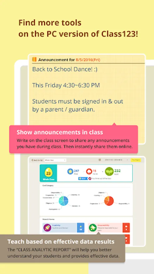 ㆍ Bring fun to your classroom with student avatars and animated feedback. (Connect your PC to the class screen and share with students!)