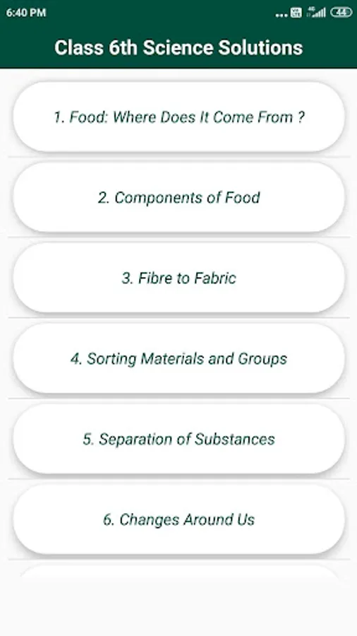 Class 6th Science Solutions App is very Easy to Read with Great Interface. You can enjoy this application as a student.