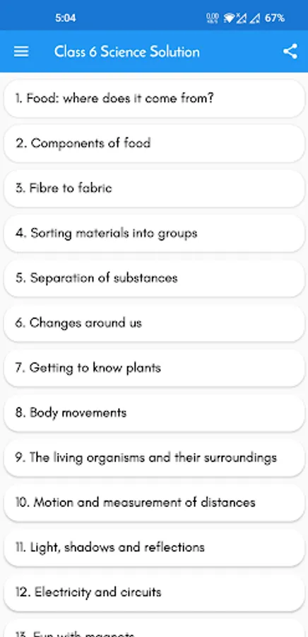 This app contains Science NCERT solutions of Class 6, including the following chapters: