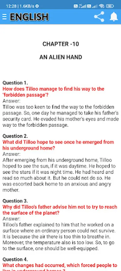 Class 7 English - The Alien Hand (All Chapters) Answers