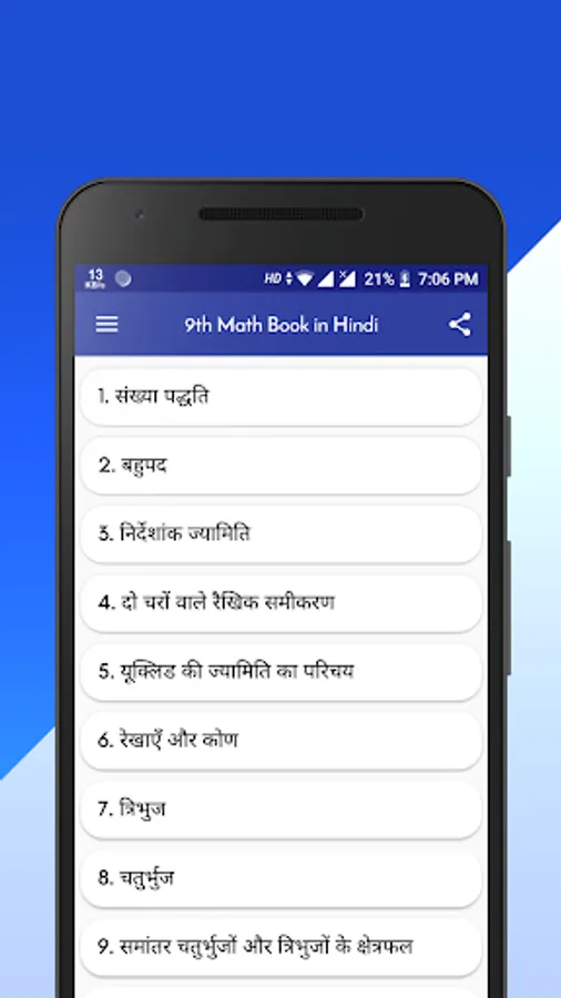 This App Contains all chapters of Class 9 Maths NCERT Book for Hindi Medium Students.This App contain NCERT Mathematics Textbook of class 9 in Hindi Medium.