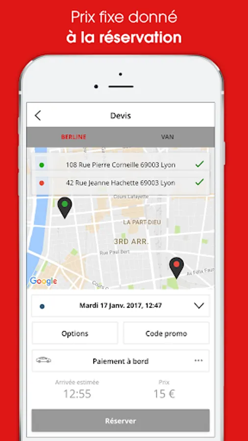 Enjoy your trip, the ALLO VTC LYON application calculates the price of your trip and offers a quote: the price is fixed and will not change during the race!