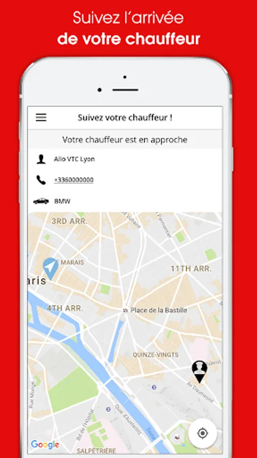 Follow the arrival of your ALLO VTC LYON driver in real time on the map.