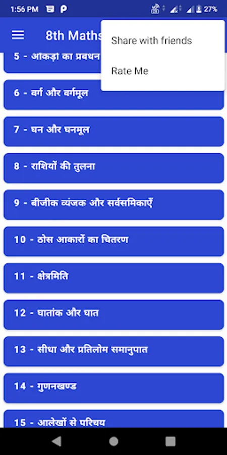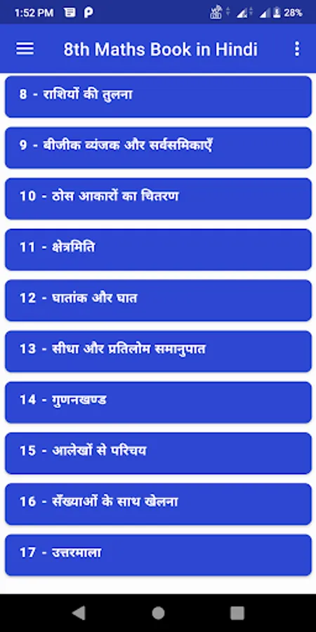 This App Contains all chapters of Class 8 Maths NCERT Book for Hindi Medium Students. This App contain NCERT Mathematics Textbook of class 8 in Hindi Medium.