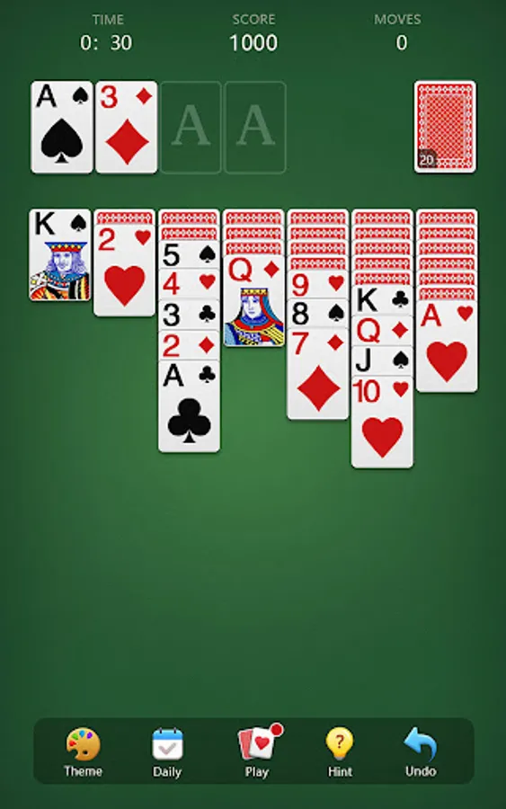 This game reproduces the classic solitaire gameplay of the computer age, it is small in size, does not take up space,