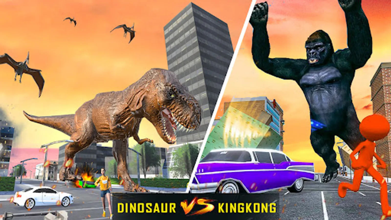 The rampage dinosaur destruction of the action gorilla fighting game has given rise to the city battle between the Kong Gorilla and angry dino rampage.
