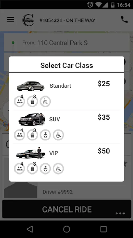 • Driver location and ETA