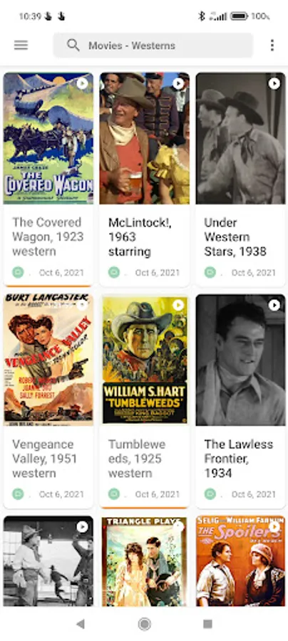 All types of movies: Action movies, Adult movies, Comedy, Drama, Film Noir, Horror Movies, Musicals, Propaganda, Sci-Fi, Thriller, Westerns and other classic movies in the public domain, free to watch on your mobile phone.