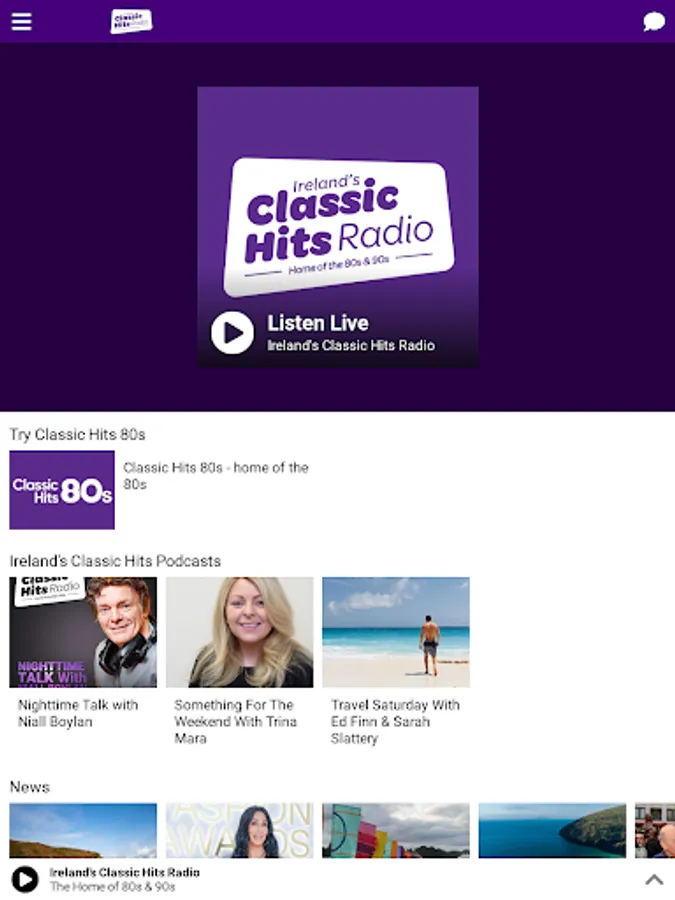 Get the app from Ireland's Classic Hits Radio today. Ireland's Classic Hits Radio is the home of the 80s, 90s and more accross. Join us for Colm & Lucy in the Morning, Trina Mara at work, Damian Farrelly in the Afternoon, The Kim Wikle 80s Show, Ruth Scott at Night and Nighttime Talks with Niall Boylan. All the biggest songs and the biggest artists of all time are right here on Ireland's Classic Hits Radio.