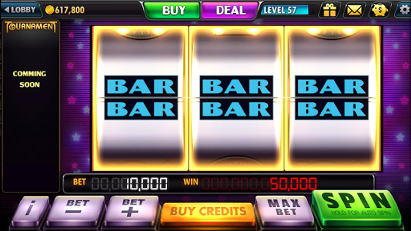 All classic slots machines like 777 slots, double diamond machines and wheel of fortune machines are all available in 777 Slots™ Huge Win Slots - Classic Slots! We also have the Wheel of Luck Lottery!