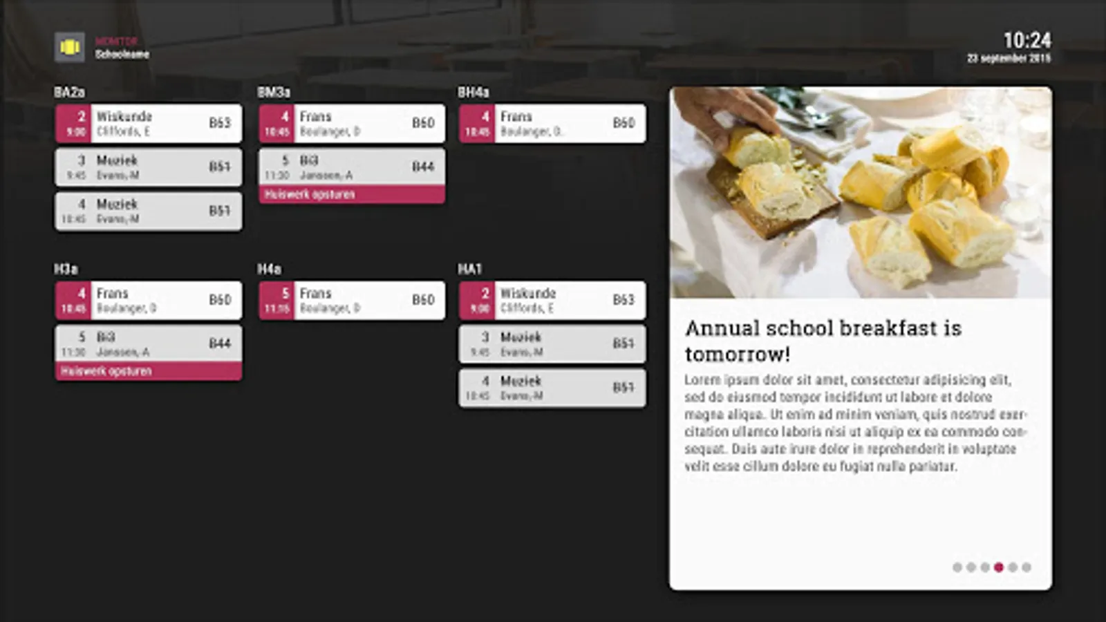 Classie Monitor displays all, or a custom set of changes in your schedules on a monitor, by using Android Tv.